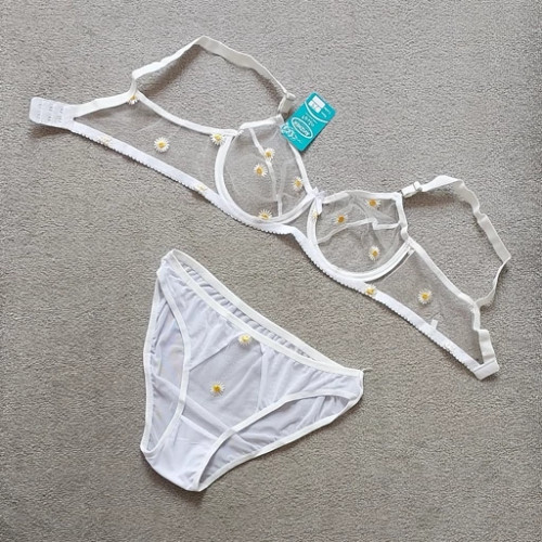 ست شورت و سوتین توری گلدوزی سفید 75-90